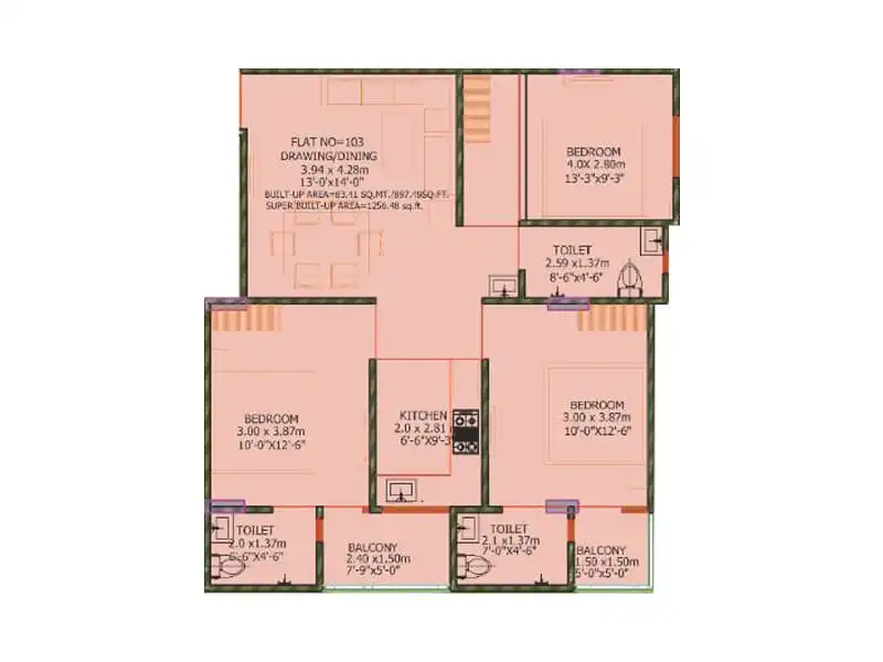 | 2 BHK (Spacious) | 764 sq.ft. | Contact for Price |