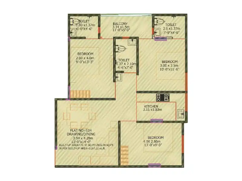 | TypeCarpet AreaDetails | ||