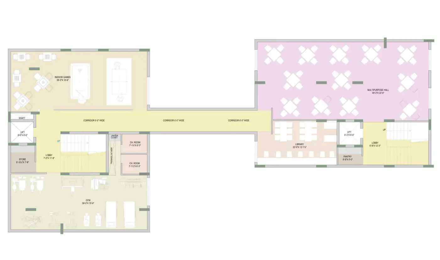 Within the campus, Balaji Elesto focuses on amenities that support everyday living rather than only showpiece features. The brochure lists clubhouse spaces with indoor games (table tennis, card and chess games), a multipurpose hall, library room, pantry, community office and tuition/tutor room, so residents can work, study and socialise inside the project itself. For fitness and recreation, there are parks within the society, landscaped greens, kids’ play areas and a Jain temple/temple in the premises, offering a family‑friendly environment in line with typical buyer expectations in Mansarovar and Sanganer. Safety and infrastructure are strengthened by biometric entry at the main gate, 24×7 CCTV coverage on all floors, a guard room, installed fire‑fighting systems, a 25 kW DG set for common‑area power backup, a dedicated transformer, EV fast‑charging point, solar panel system, water boring and structured water harvesting, which help position the project as a more future‑ready option compared to older standalone apartment blocks.
